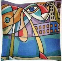 Cushion cover, hand chainstitched design by Manitoba Canada artist Shirley Lloyd-Davies. Canvas backing with wool embroidery. 24x24 "